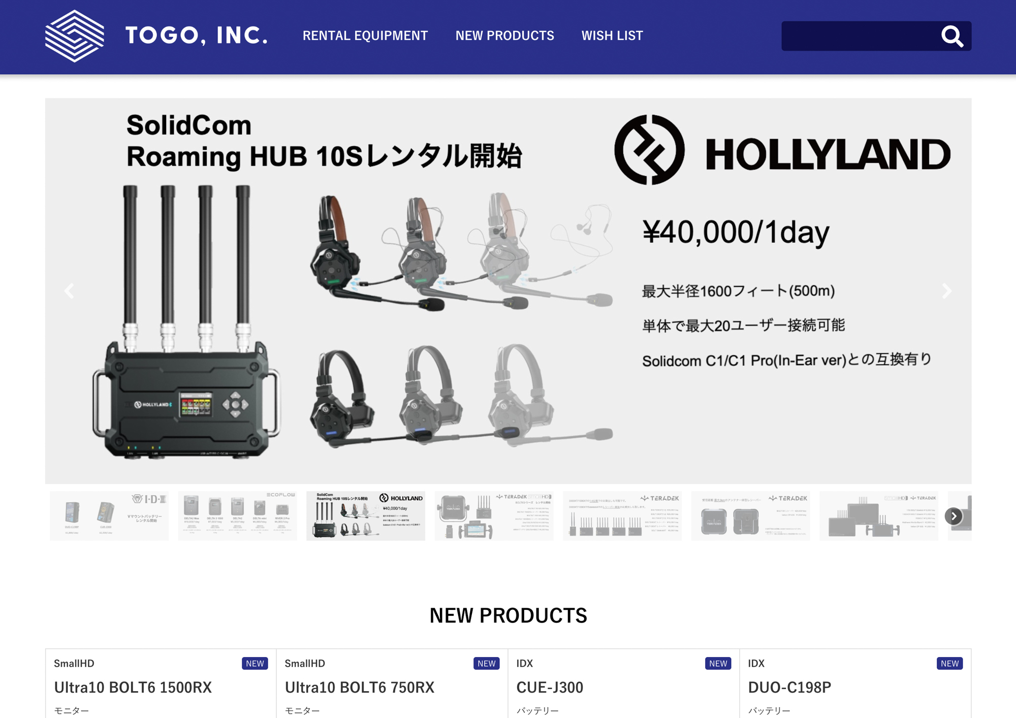 映像機材レンタル・販売会社「TOGO INC.」のEC構築。