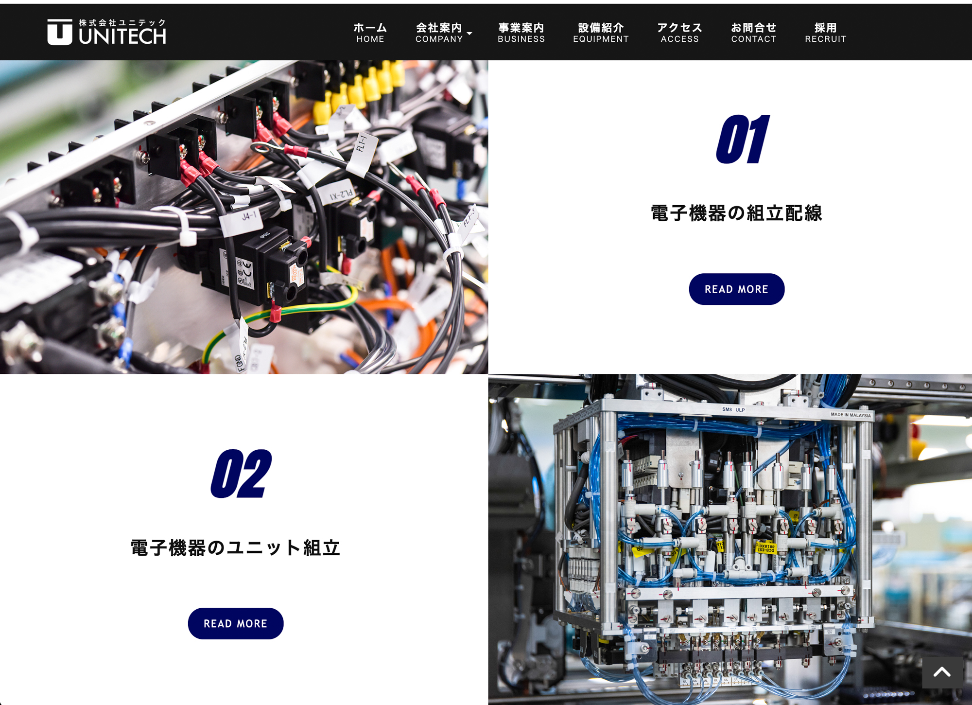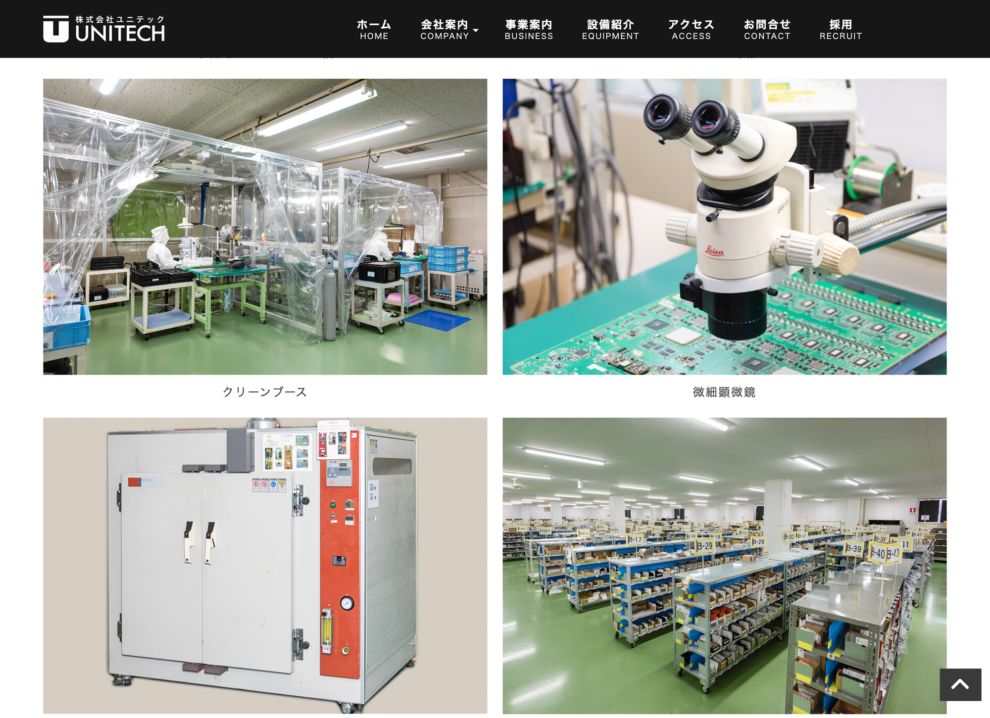 電子機器メーカー「ユニテック」の企業サイト制作。