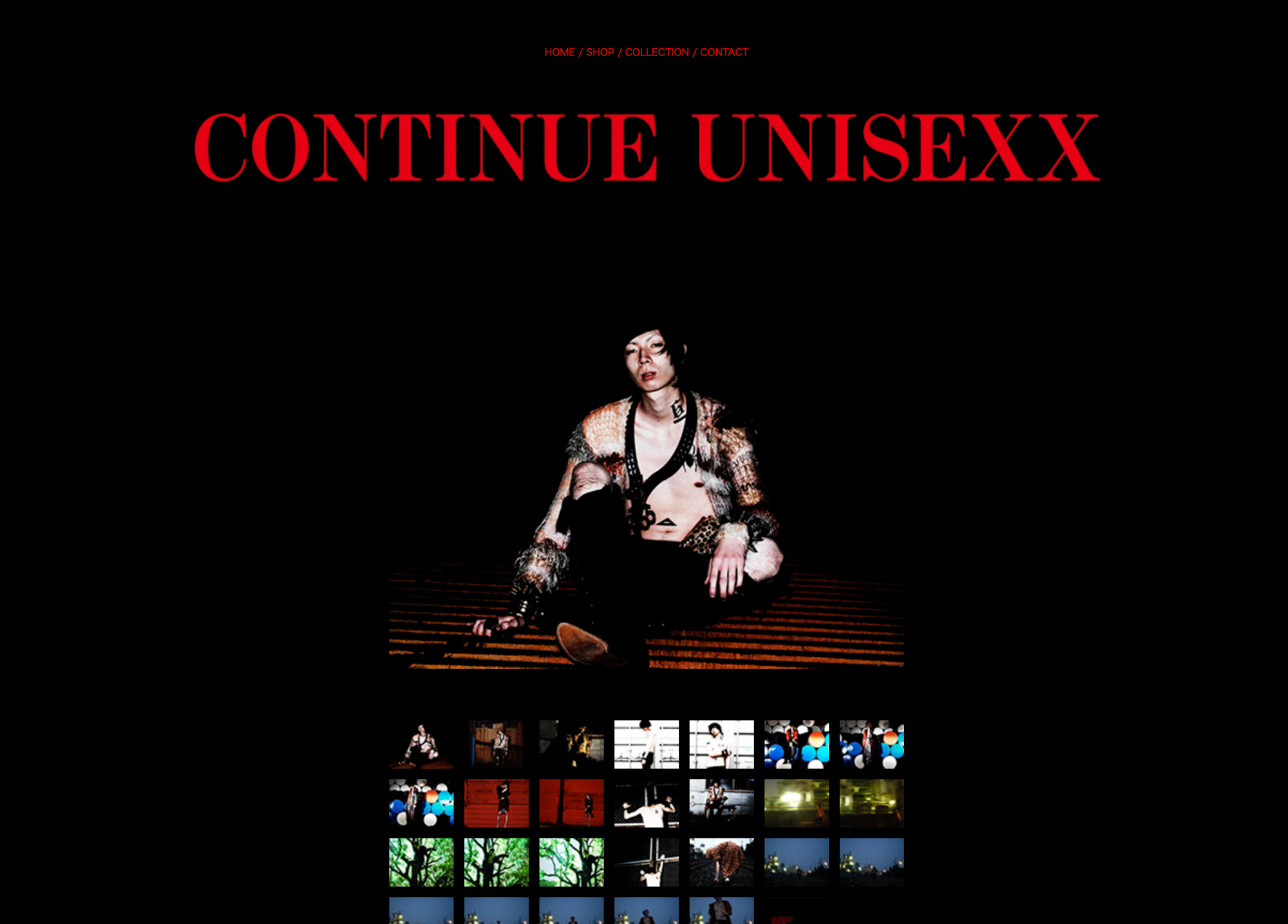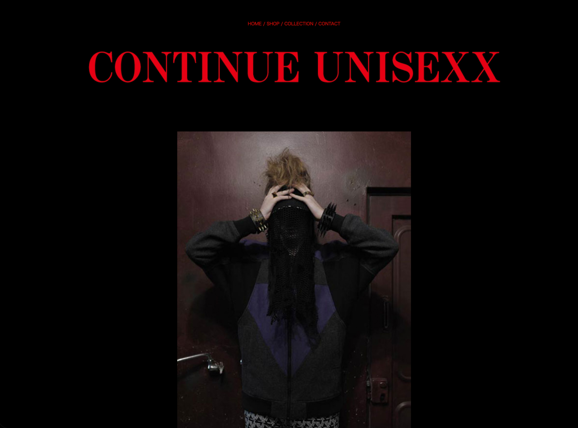 ApparelECPhotoVISUALWEB自社ブランド「CONTINUE UNISEXX」のWEB・EC制作。プロダクトデザインから制作、ビジュアル構築、AIモデル生成まで一貫して担当。パンクな衝動と破壊的エネルギーを、ビジュアルとUIに落とし込んだサイト。